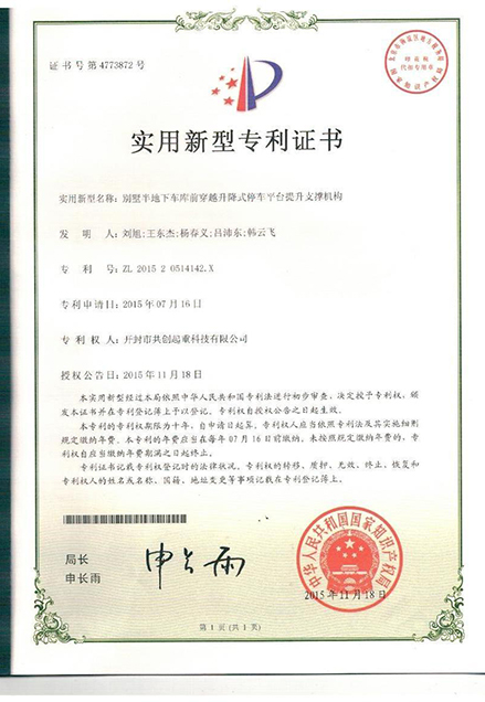 公司高度重視科技研發(fā),截止到2023年,已累計獲得多項發(fā)明專利、實用新型專利、外觀專利、軟件著作權。2012年,公司實驗室被認定為開封市立體停車設備工程技術研究中心。2018年以來,公司先后獲得“河南省高新技術企業(yè)”、“科技型中小企業(yè)”、“河南省專精特新企業(yè)”等稱號。2021年,公司與鄭州大學開展校企合作,聯(lián)合成立了“城市靜態(tài)智慧交通研究院”,公司投運的智能停車場、停車產業(yè)大數(shù)據(jù)中心、立體停車設備工程技術研究中心被鄭州大學確定為“實踐教學基地”,形成了科研助力企業(yè)與企業(yè)反哺科研的良性互動,樹立了校企產學研合作的典范。