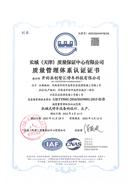 開封共創(chuàng)智匯停車科技有限公司總部位于開封市城鄉(xiāng)一體化示范區(qū),擁有研發(fā)生產廠區(qū)80畝,鋼結構車間25000平方米,大型綜合試驗場8000平方米,立體停車設備年生產能力30000車位。